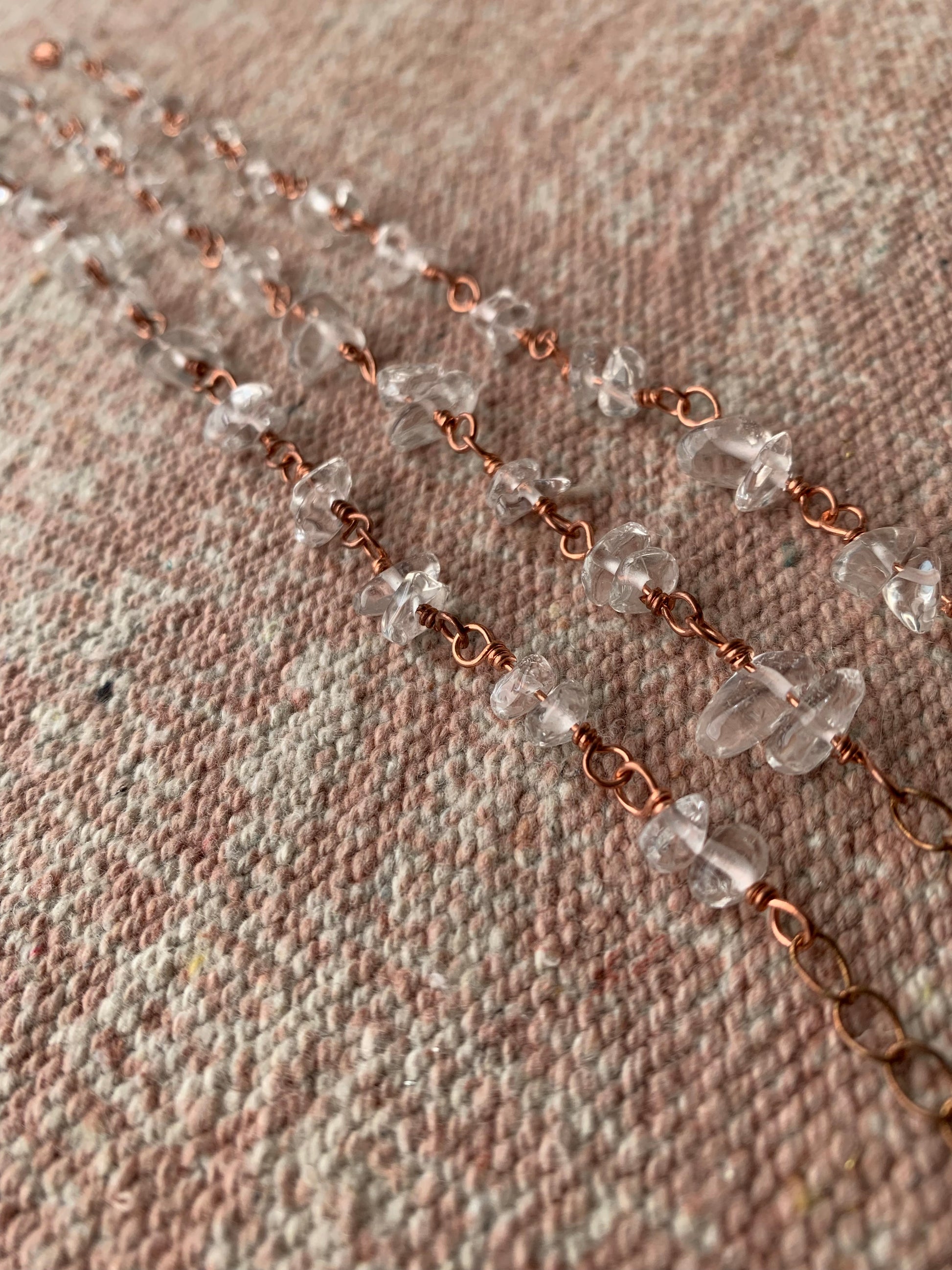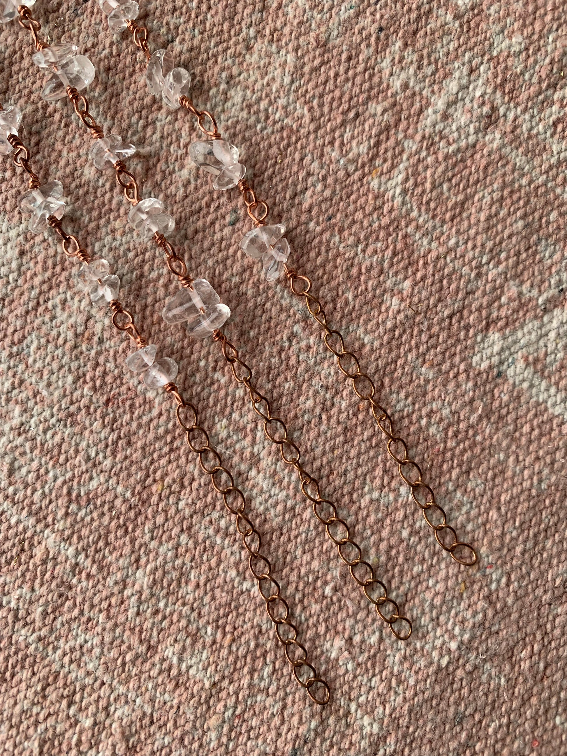 Copper Wire Wrapped Clear Quartz Chip Bracelet
