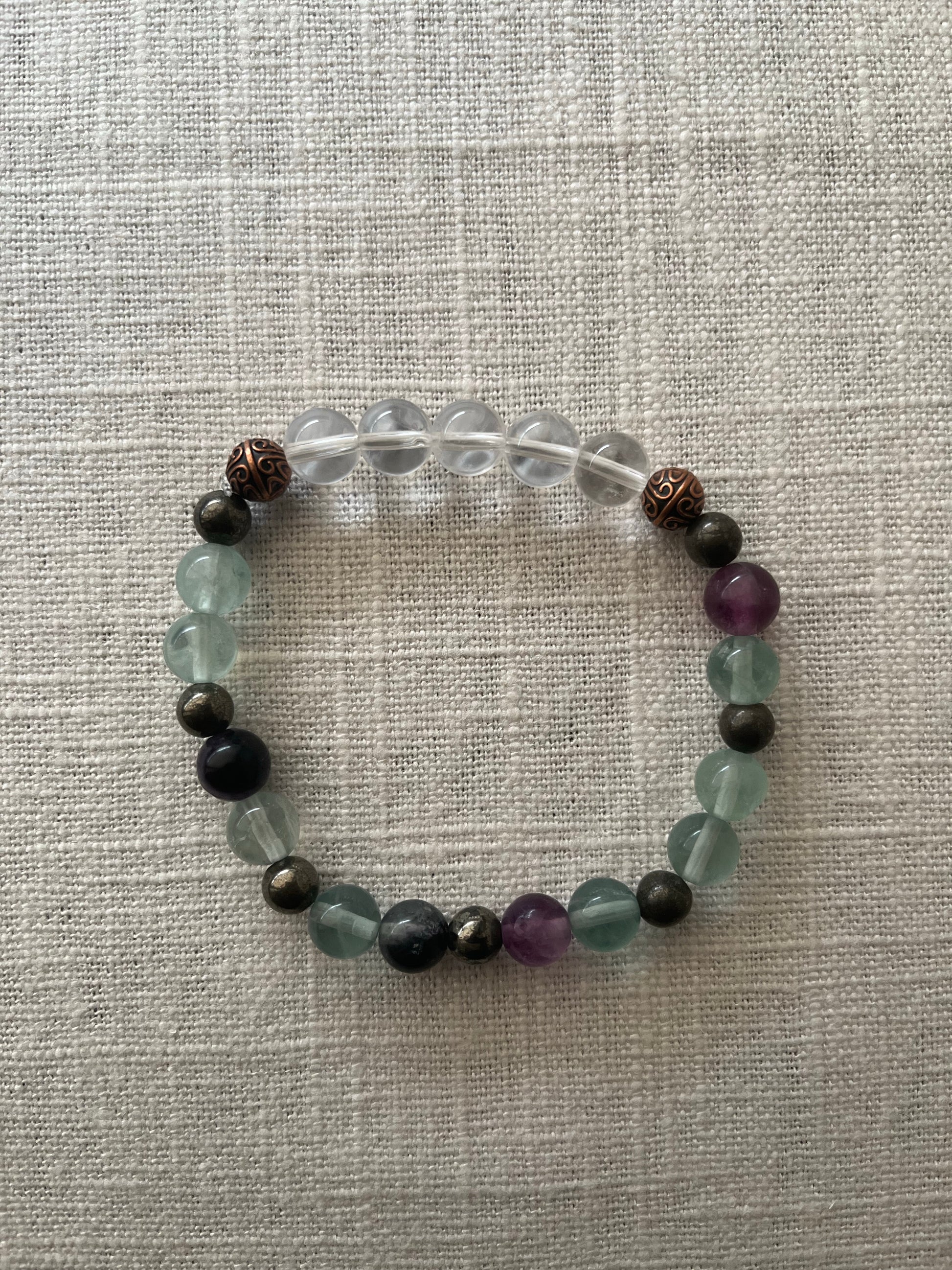 Standard Size Fluorite and Pyrite Stretch Bracelet