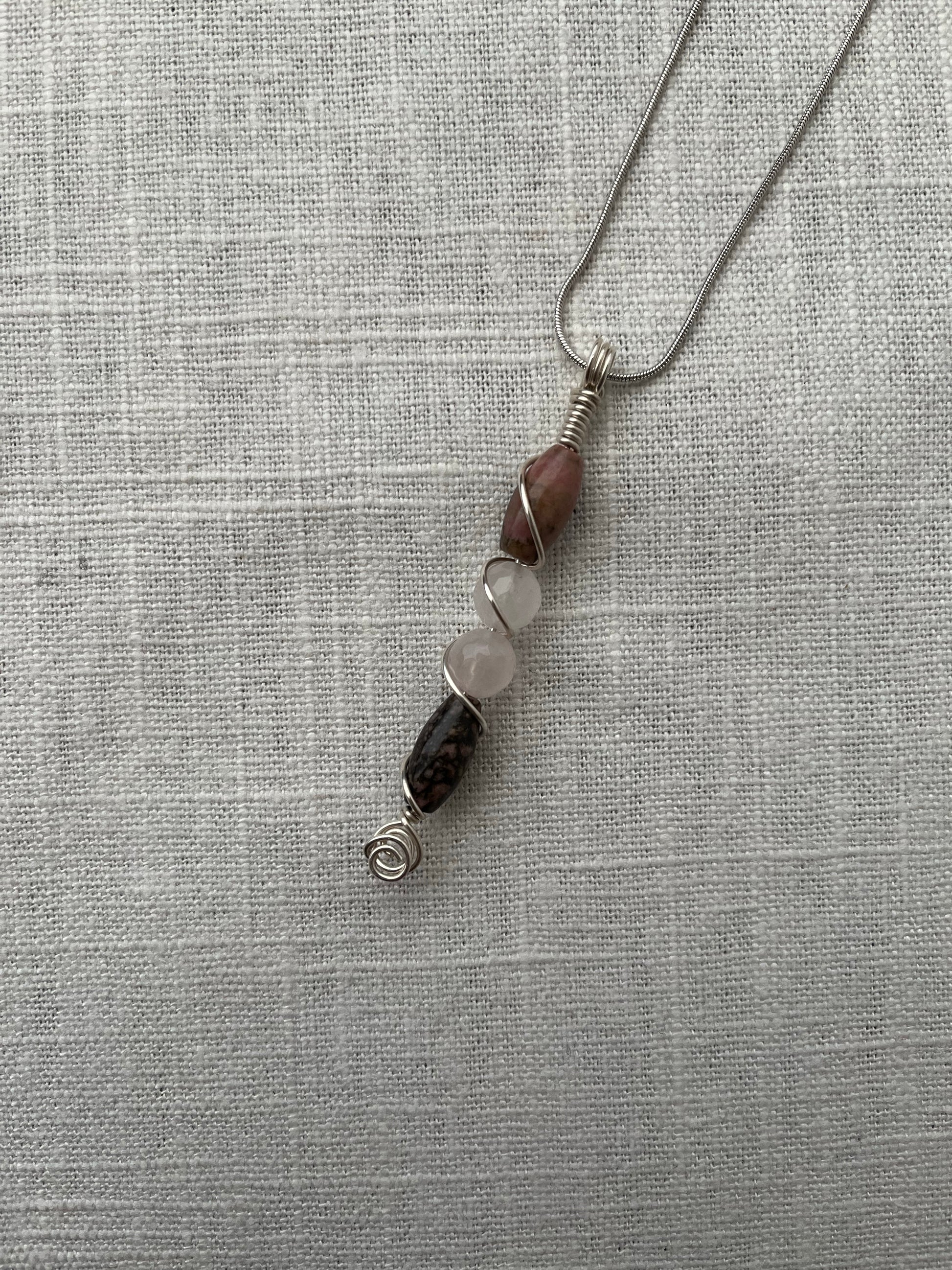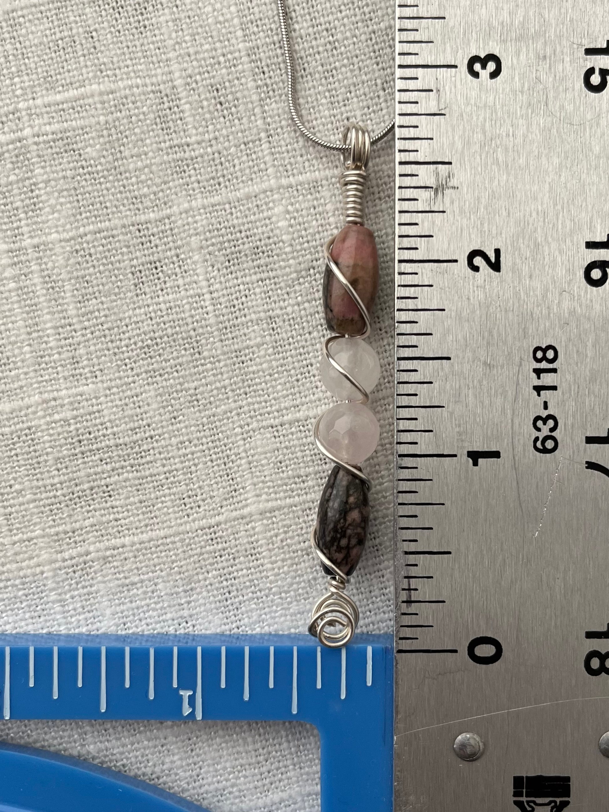 Argentium Silver Wire Wrapped Rhodonite and Rose Quartz Pendant
