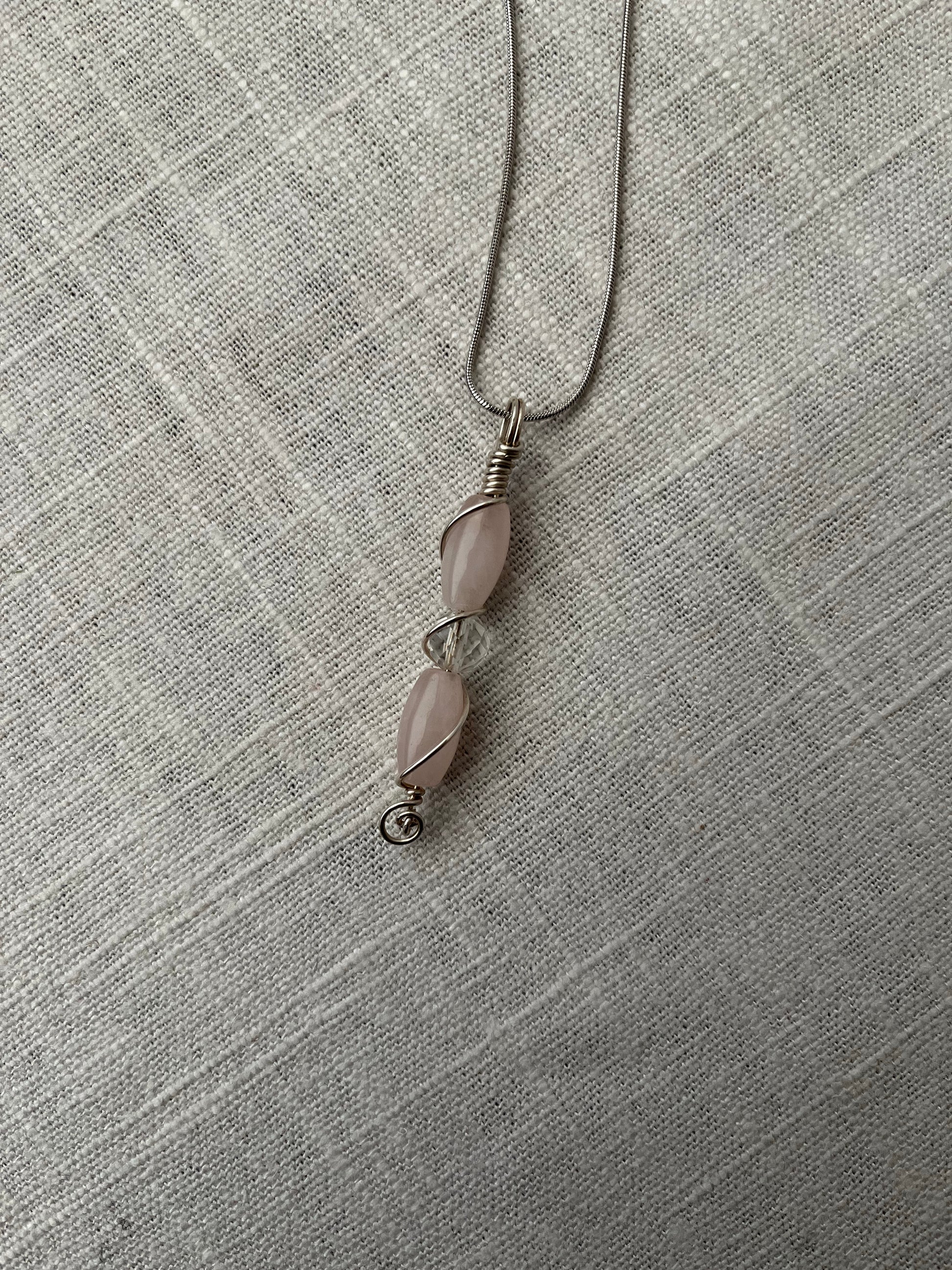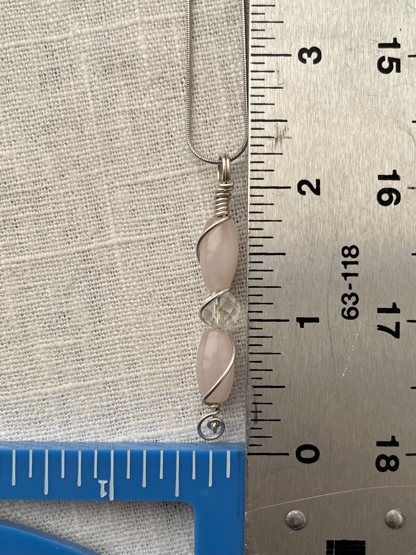 Argentium Silver Wire Wrapped Rose Quartz Pendant